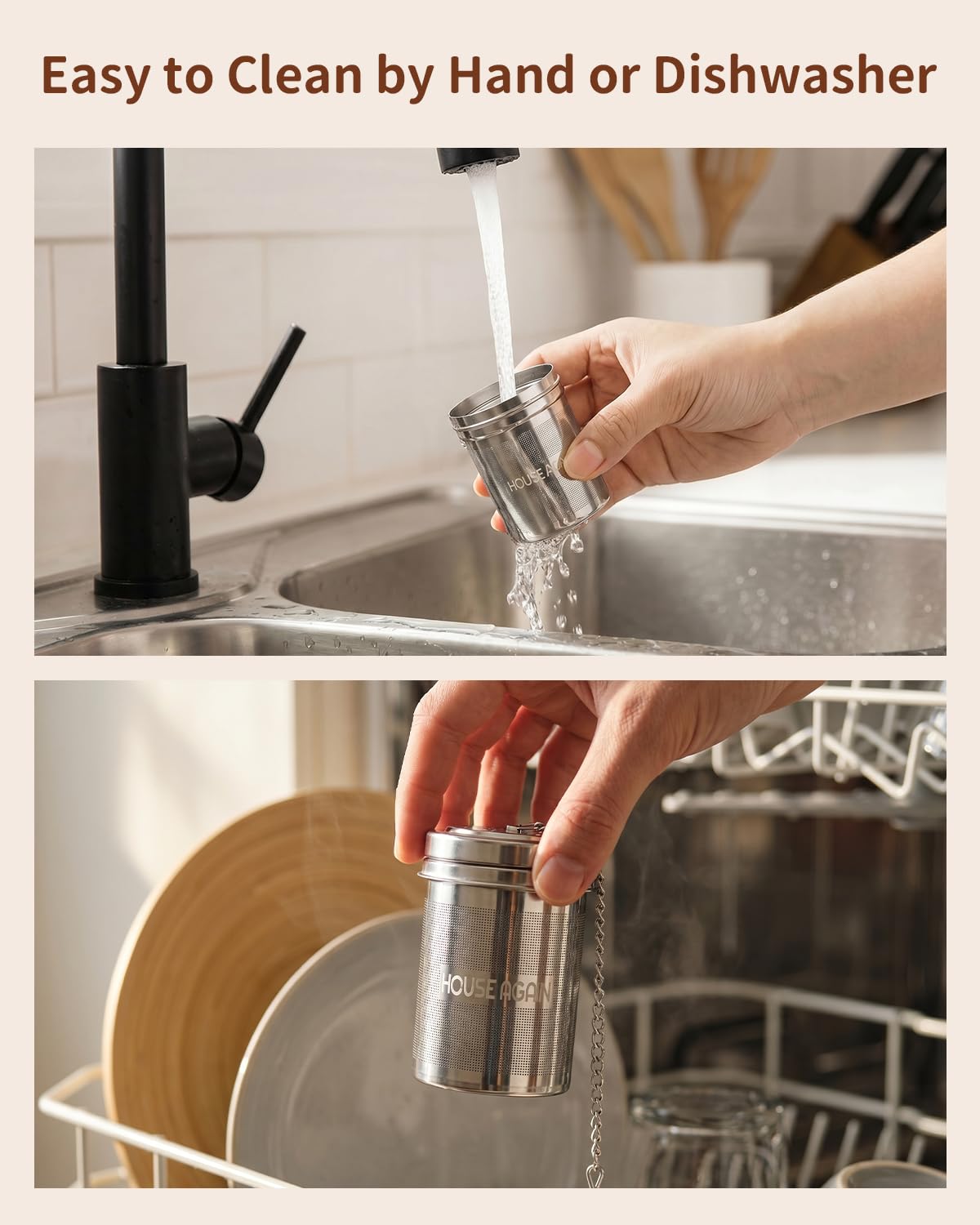 Upgraded Micron Mesh: The mesh of the House Again large tea filters, thanks to a more advanced perforation process, can be micron-sized to trap the smallest tea particles. No tea dregs to bother you. Loose leaf tea steeper is Ideal to hold tea leaves, particles, or ground coffee
