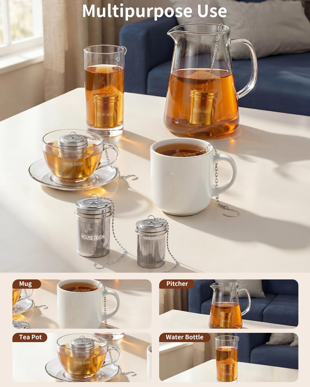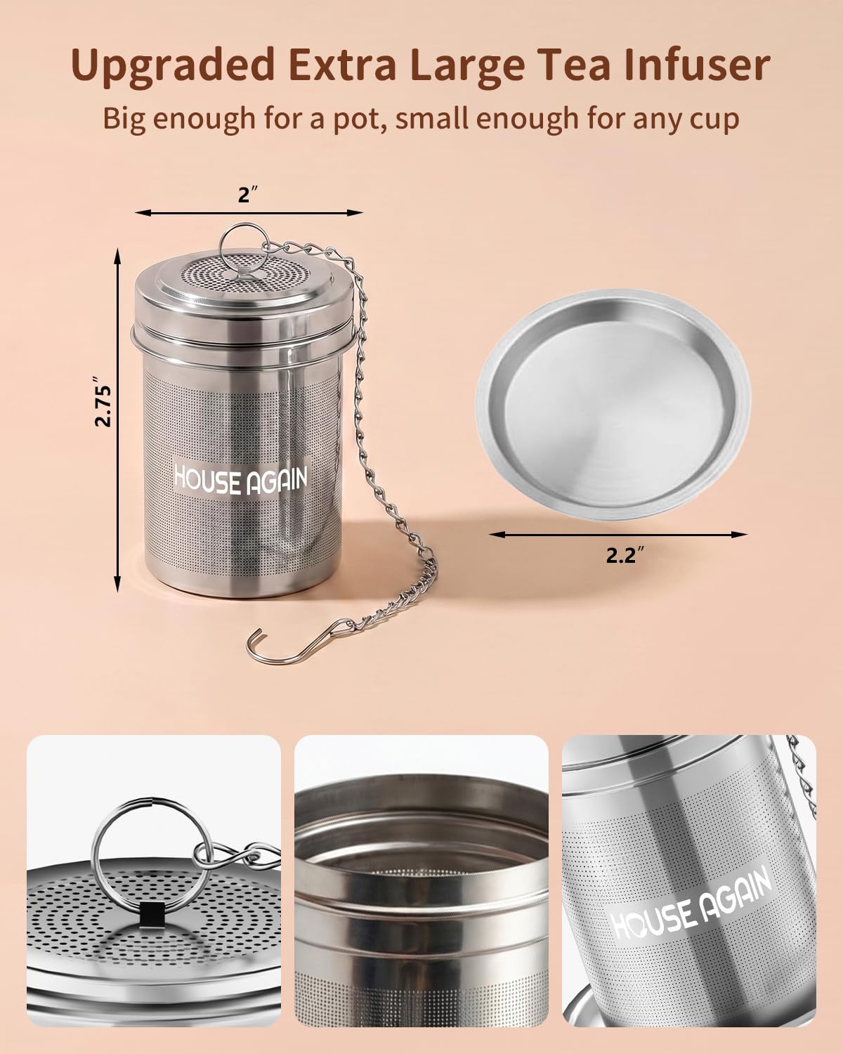 Savour your tea life! ! Rather than a tea bag, the tea infuser offers the loose tea leaves enough room to diffuse into every nook and cranny of your mug and get fully infused, and the fragrance emanates and fills your nostrils as the tea leaves stretch out. On top of that, the House Again tea strainers have better quality(18/8 stainless steel) and more thoughtful construction(Extra fine mesh holes; Extended chain; Drip tray), which constitutes the optimal choice to scale your tea brewing moment to new heights.