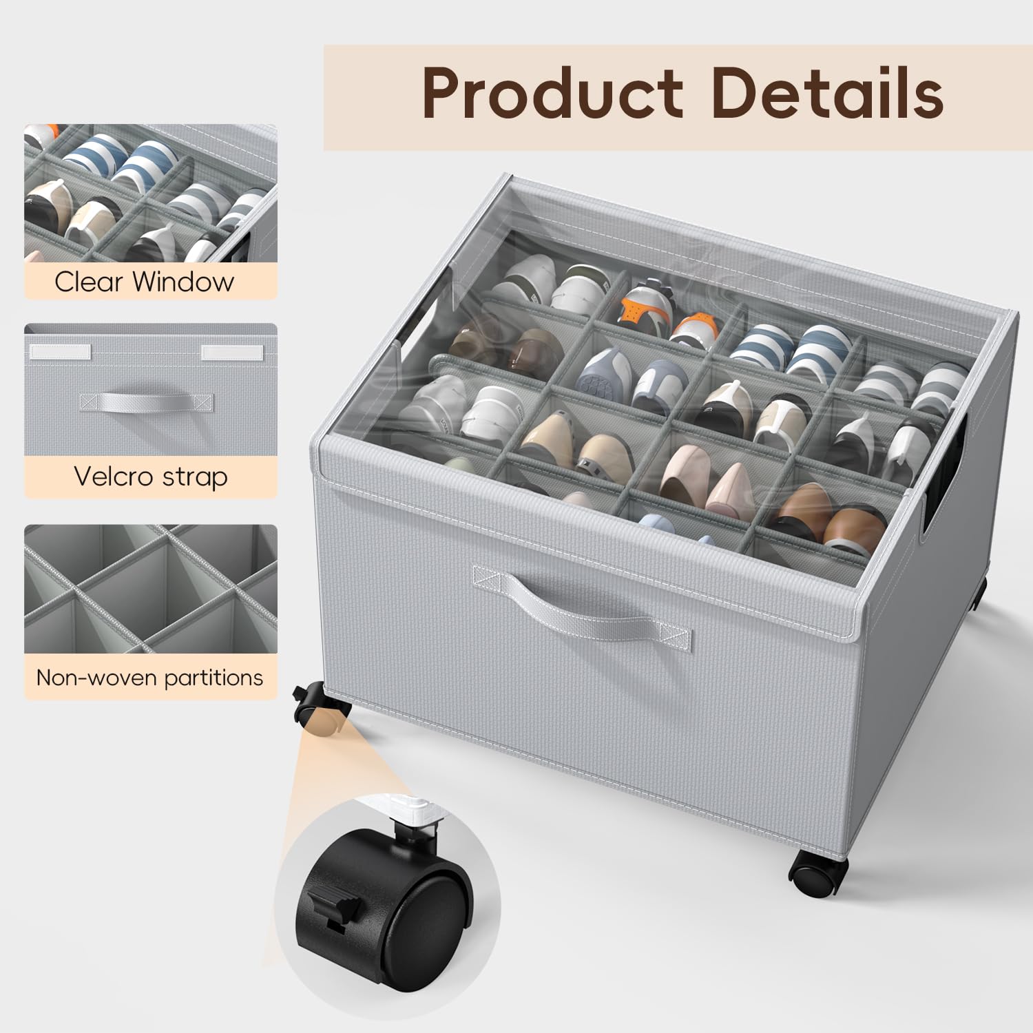 Removable 360° Brake Wheel: Effortlessly move your shoe containers anywhere with smooth-rolling wheels featuring lockable brakes. Perfect for reorganizing closets or accessing shoes under beds, this unique mobility feature sets our shoe bin apart from static storage solutions.