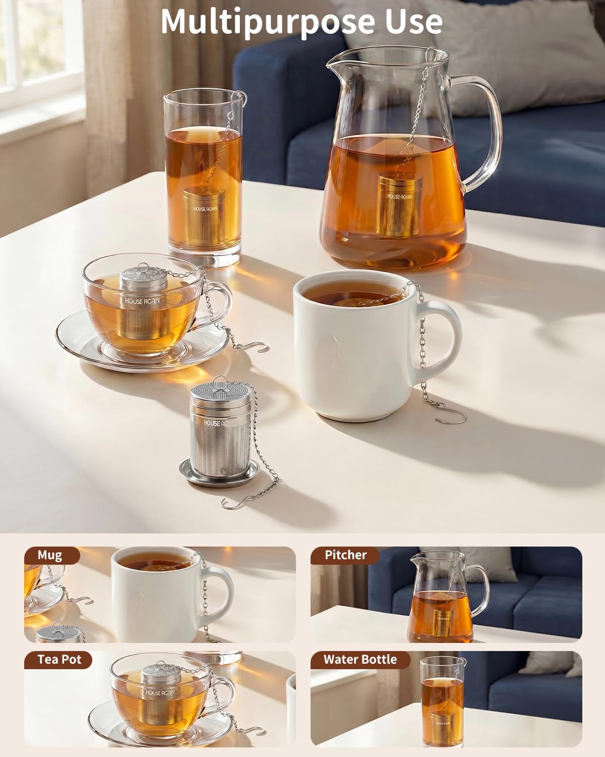 Perfect Gifts for Tea Lovers: Unlike tea bags, our loose tea infusers give leaves ample space to fully expand and infuse, releasing rich fragrance into every sip. House Again tea infusers bring flavorful tea effortlessly. Package: Comes with 2 packs of 1.5” diameter and 2.2” high tea balls for loose leaf tea and 2 saucers.