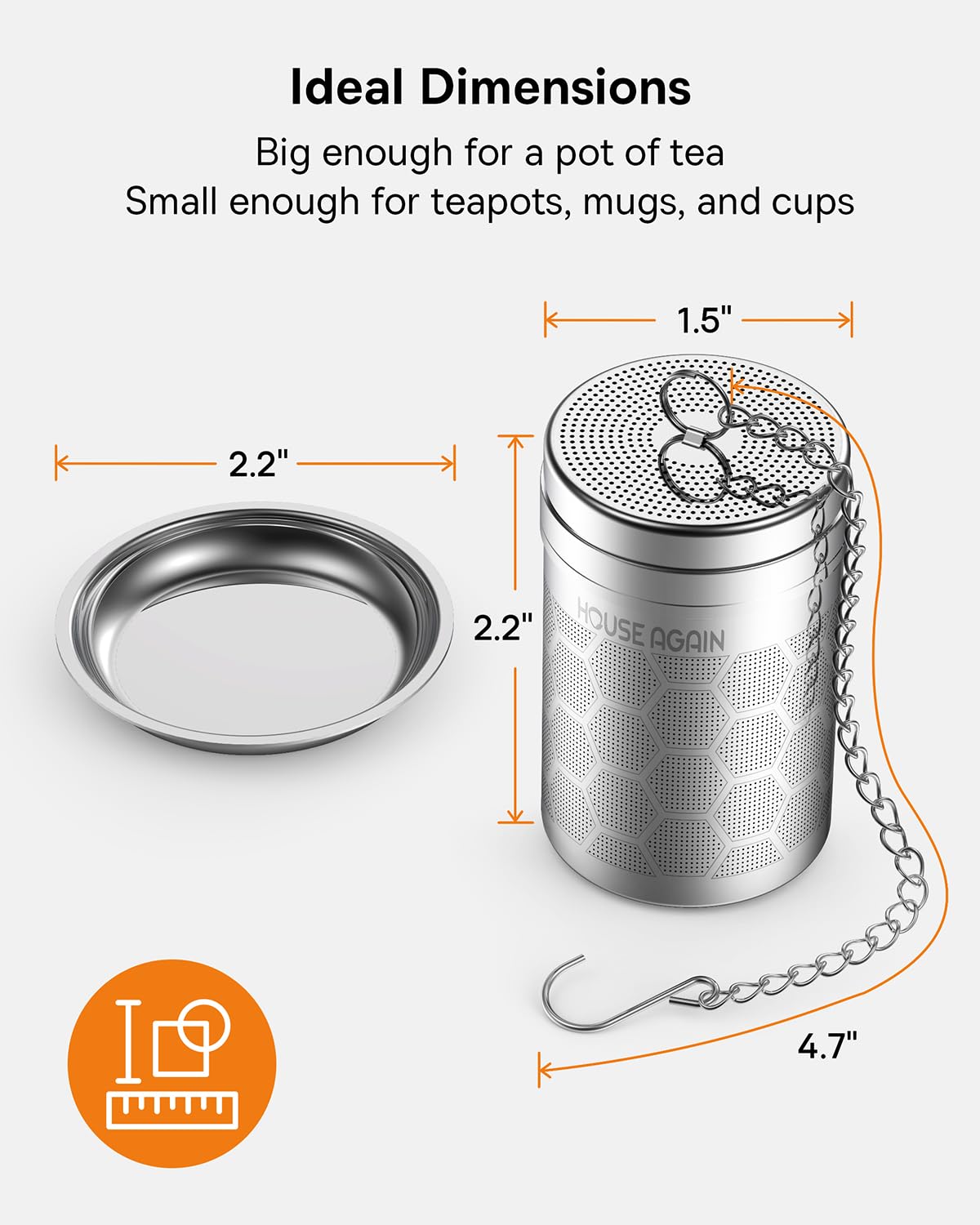 Upgraded Micron Mesh: The mesh of the House Again tea filters, thanks to a more advanced perforation process, can be micron-sized to trap the smallest tea particles. No tea dregs to bother you. Loose leaf tea steeper is Ideal to hold tea leaves, particles, or ground coffee