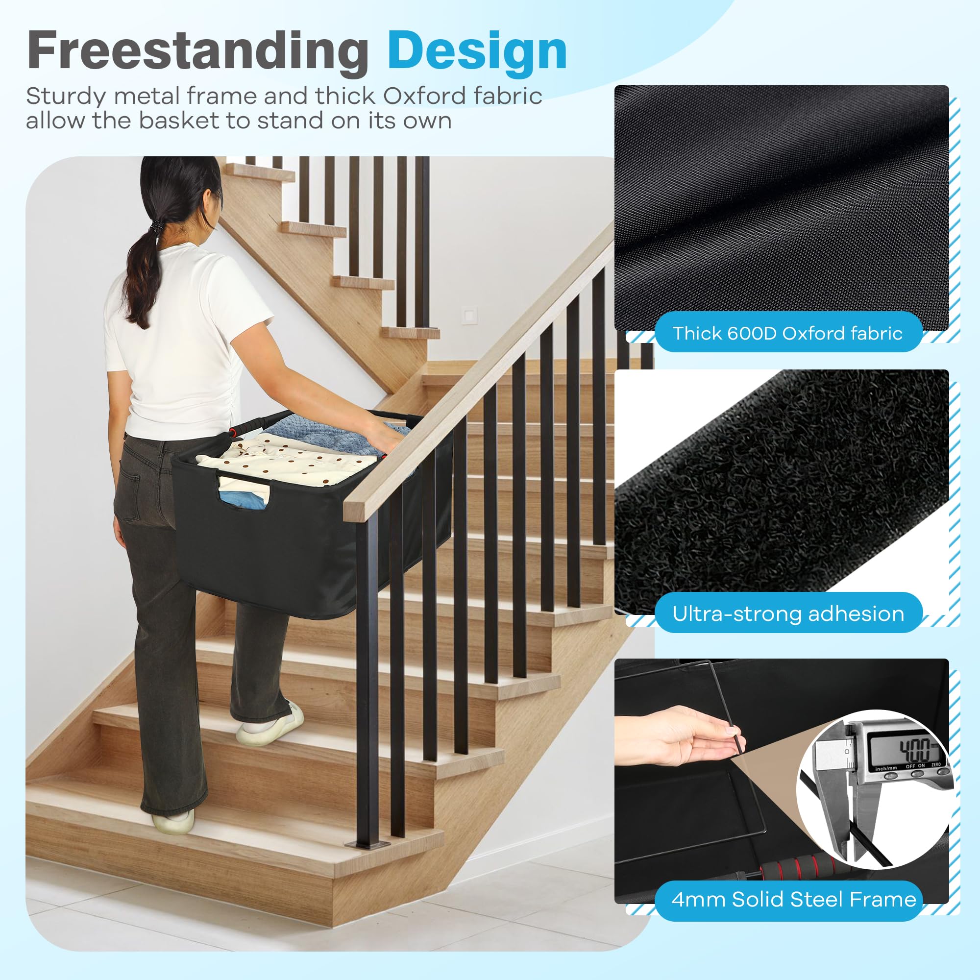 Sturdy & Stand Independently: The inner frame of our laundry hamper is made of foldable stainless steel. Compared with elastic support structures, our laundry basket can provide stronger support even when empty. Making it effortless to toss clothes and towels inside.