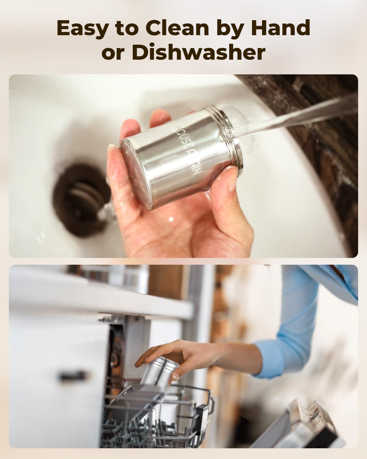 Upgraded Micron Mesh: The mesh of the House Again large tea filters, thanks to a more advanced perforation process, can be micron-sized to trap the smallest tea particles. No tea dregs to bother you. Loose leaf tea steeper is Ideal to hold tea leaves, particles, or ground coffee