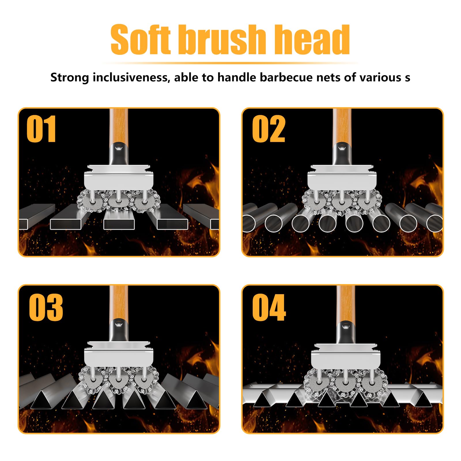 Universal Grill Savior: Our brush guarantees zero bristle shedding and gentle scrubbing across charcoal/smoker/porcelain grills. Watch burnt residues vanish in 30 seconds without damaging delicate infrared surfaces – rigorously tested for durability on 50+ grill types. (Surely, your satisfaction is always our greatest pursuit, if ever needed, simply message us at any time.)