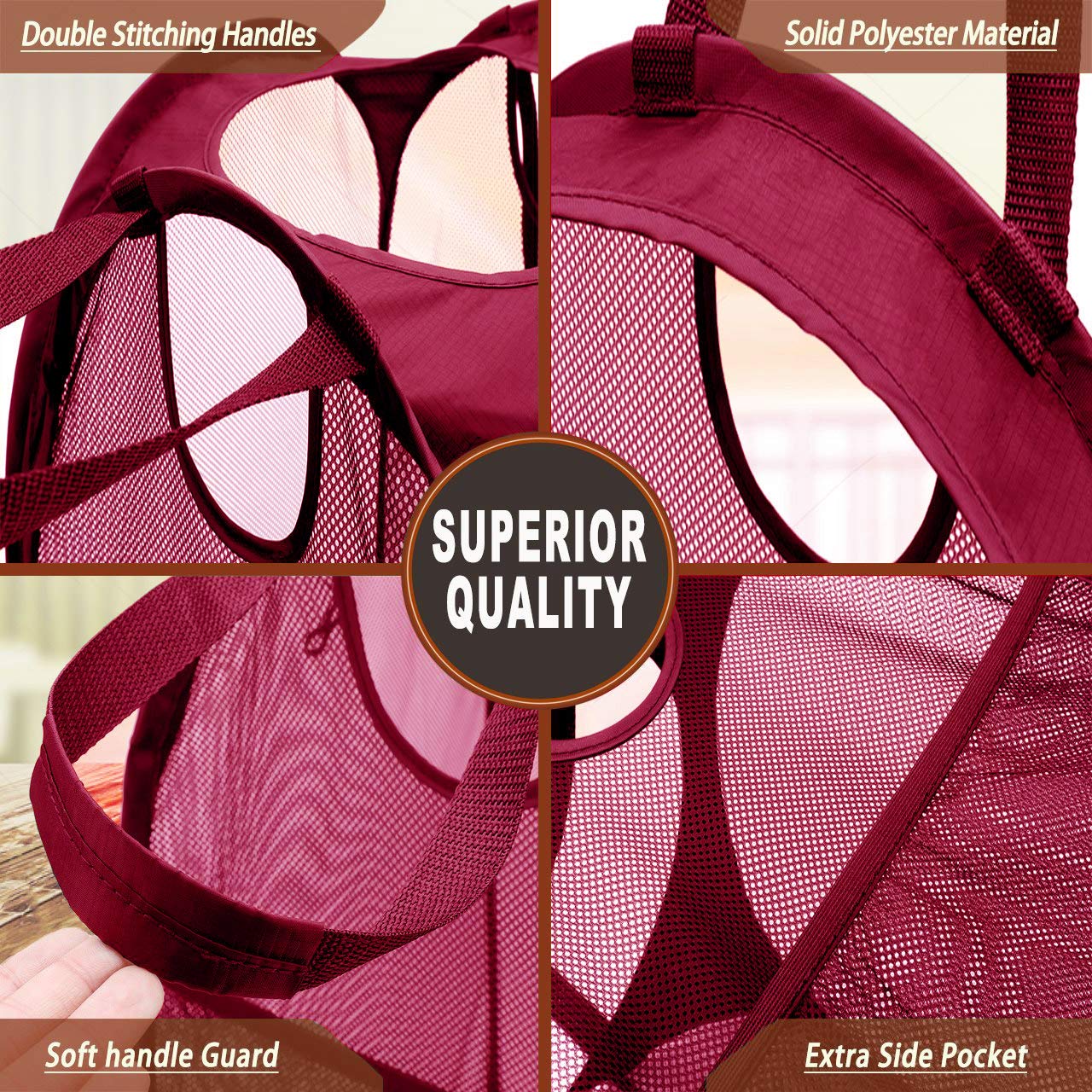 ✅5 Stars Quality Assurance!-Easily holds up to 50lbs and lasts longer! To avoid the quality issues often happened in similar products, we improved the components to make it sturdy and durable:1.5× stronger polyester mesh, high-carbon steel frame, solid polyester bottom and double stitching handles.