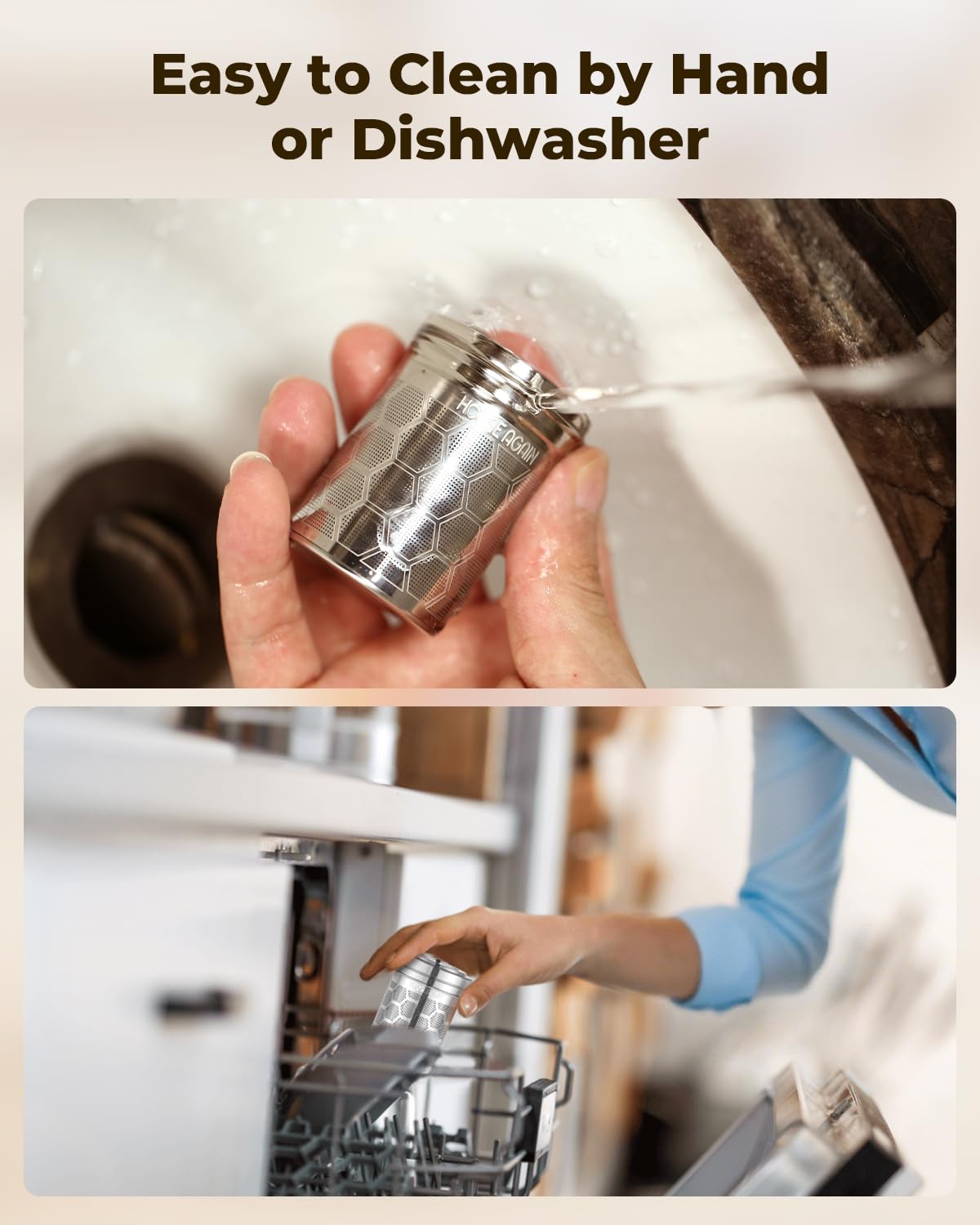 Easy to Use & Clean: Our updated threaded lid screws on effortlessly, ensuring a tight, secure seal to lock in all tea particles— leaving no particles out of the top during brewing! After use, these loose tea strainers clean up quickly with water or in the dishwasher