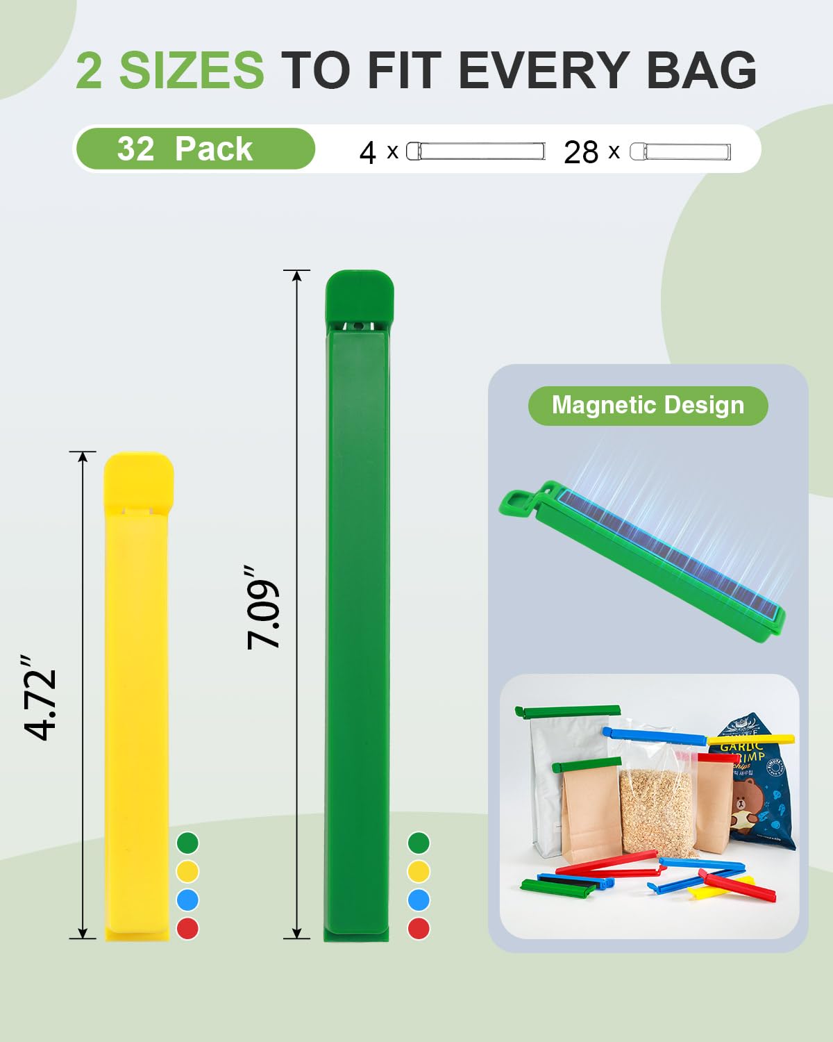 [Versatile Sizes and Colors]: Our HOUSE AGAIN bag clips set Includes 28PCS of the most commonly used 4.72in clips and 4PCS of the practical 7.09in big clips, providing greater flexibility and convenience for your needs. Perfect for sealing various types of bags. These chip clips are essential for every kitchen, adding a splash of color with four vibrant hues.