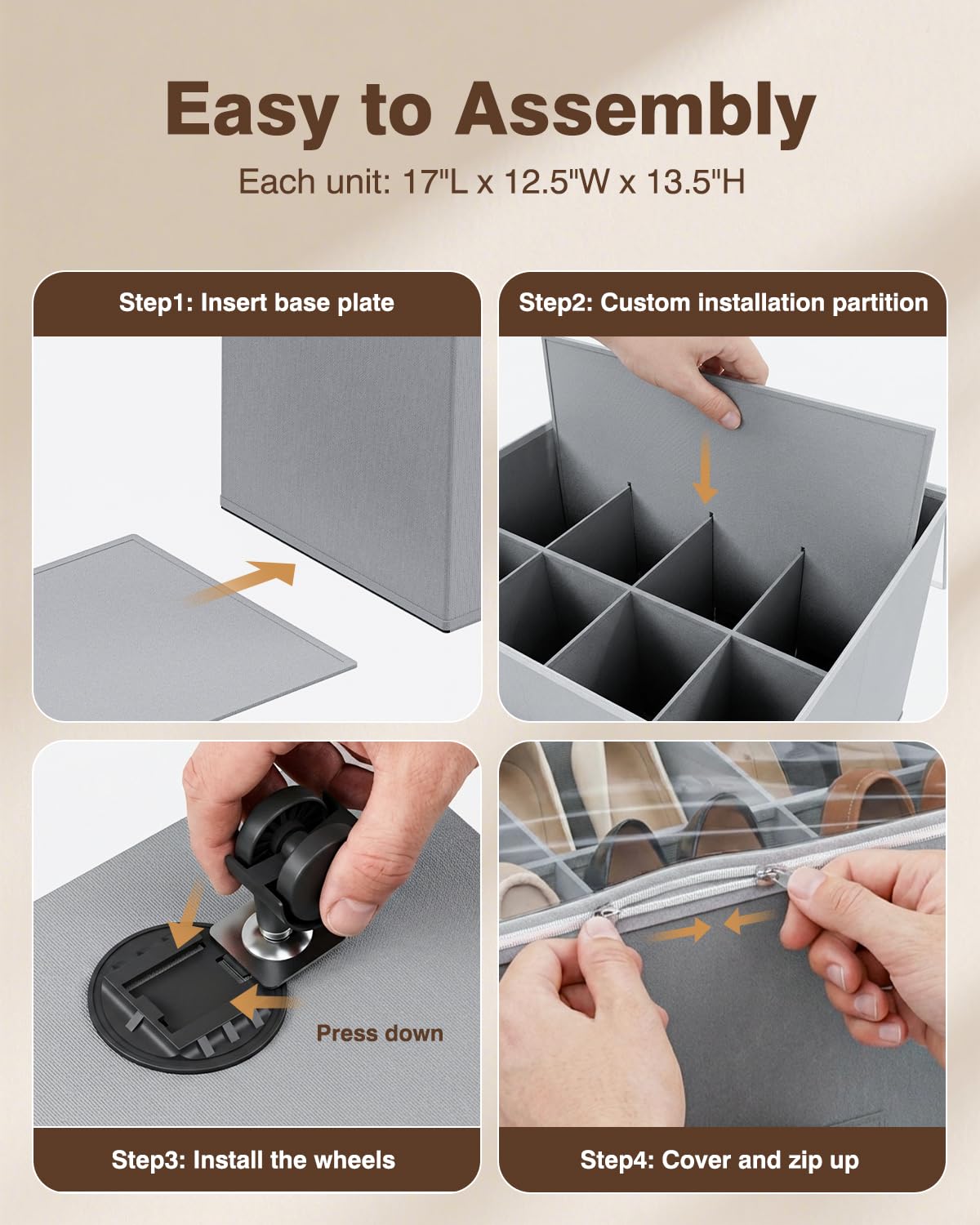 [[%F0%9F%91%9E]]【Detachable 360° Slide Wheels】Our shoe storage bin comes with 4 smooth casters, allowing for easy installation or removal in seconds without any tools. The locking device provides stability when needed and allows for easy sliding when not in use.
