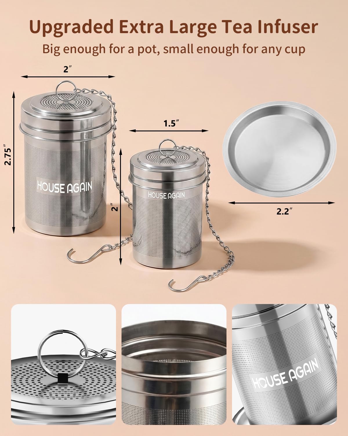 Perfect Gifts: The tea infusers for loose tea are a must-have for tea lovers. Rather than a tea bag, the tea infuser offers the loose tea leaves enough room to diffuse into every nook and cranny of your mug and get fully infused, and the fragrance emanates as the tea leaves stretch out. At the same time, they are perfect gifts for various holidays and leisure occasions. Choose House Again tea infuser, flavorful tea at your fingertips!