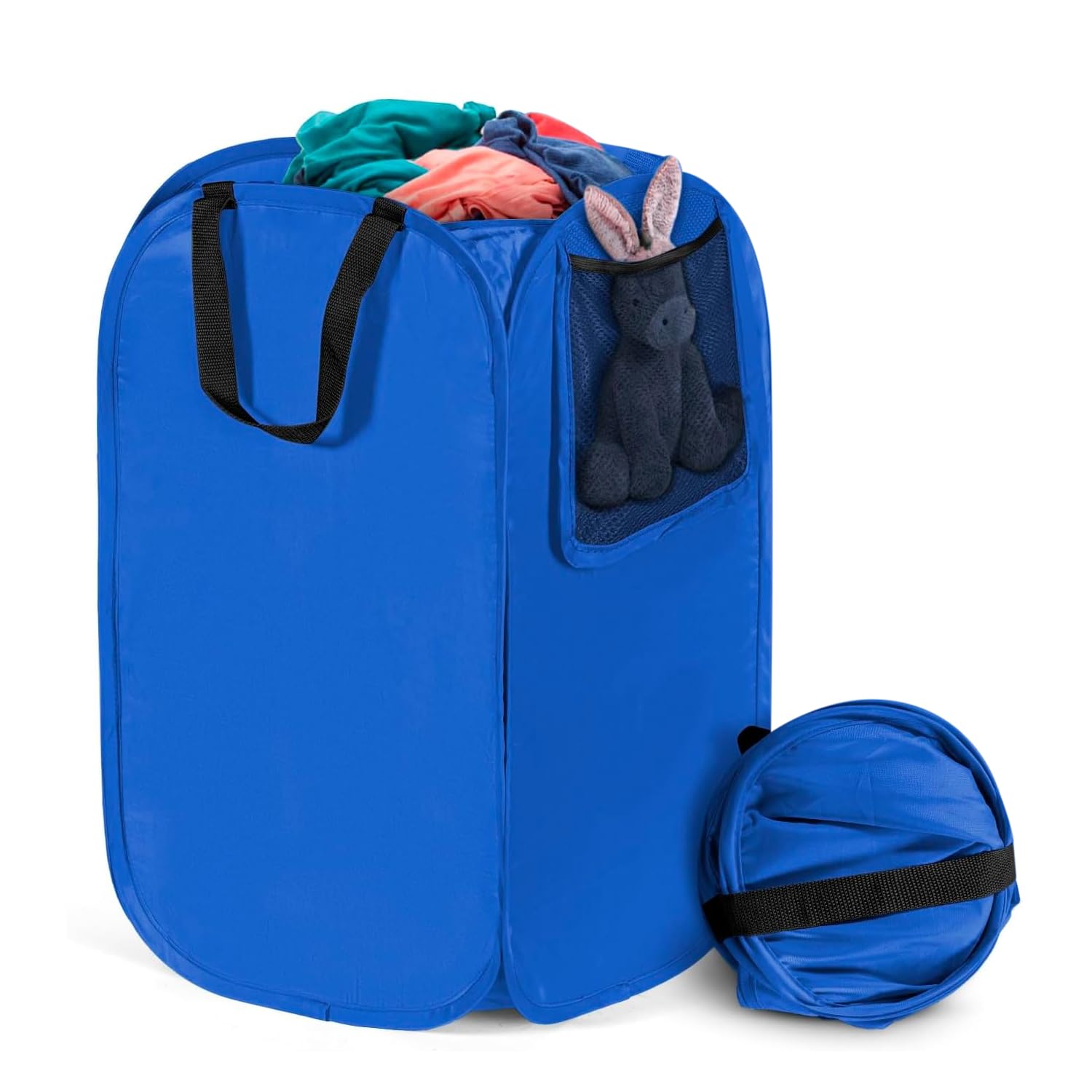 HOUSE AGAIN Upgraded Pop-up Laundry Hamper, Collapsible Laundry Basket with Durable Handles Solid Bottom High Steel Frame, Portable Foldable Dirty Clothes for Dorm, Laundry room Travel, Blue