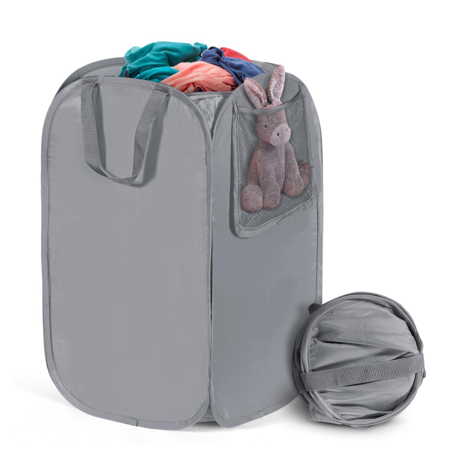 HOUSE AGAIN Upgraded Pop-up Laundry Hamper, Collapsible Laundry Basket with Durable Handles Solid Bottom High Steel Frame, Portable Foldable Dirty Clothes for Dorm, Laundry room Travel, Grey