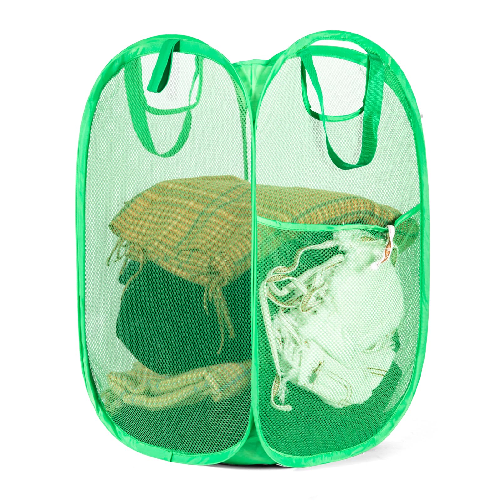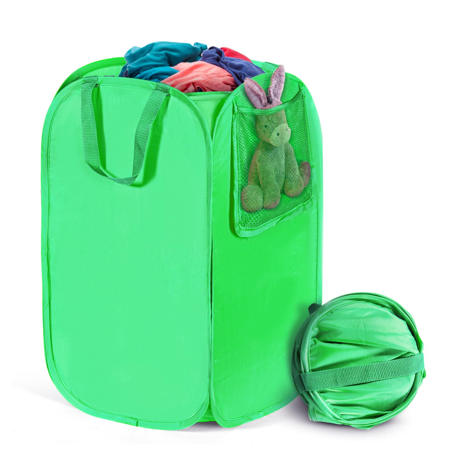 HOUSE AGAIN Pop Up Laundry Hamper, Strong Mesh Laundry Baskets Collapsible, Hamper with Handles and Side Pocket, Portable Foldable Dirty Clothes for Dorm, Laundry room and Travel Storage, Green