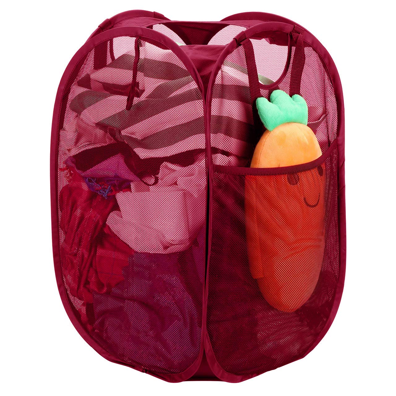 Strong Mesh Pop-up Laundry Hamper, Quality Laundry Basket with Durable Handles Solid Bottom High Carbon Steel Frame, Easy to Open and Fold Flat for Storage (Red)