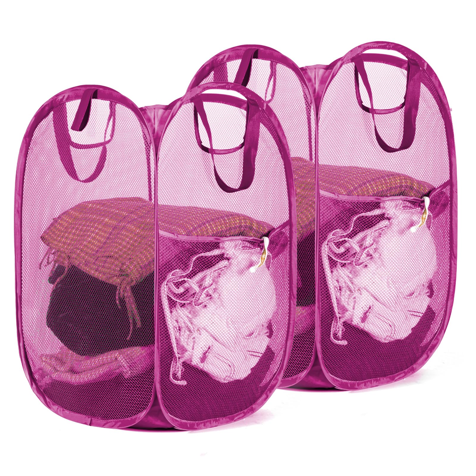 HOUSE AGAIN 2 Pcs Pop Up Laundry Hamper, Strong Mesh Laundry Baskets Collapsible, Hamper with Handles and Side Pocket, Portable Foldable Dirty Clothes for Dorm, Laundry room and Travel Storage, Pink