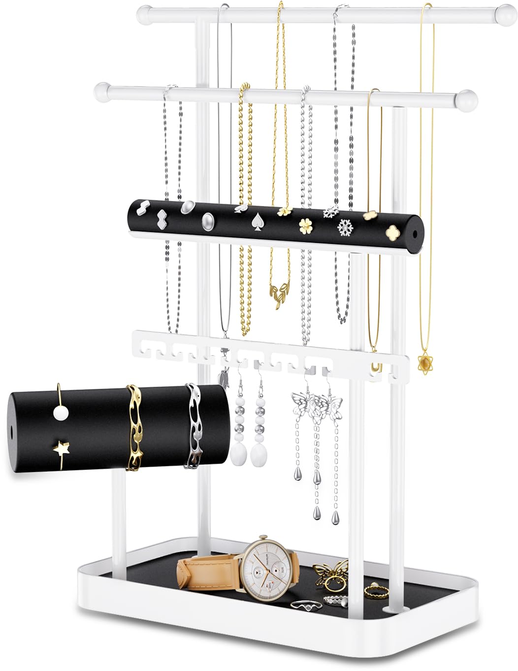 HOUSE AGAIN Jewelry Organizer Stand, Jewelry Holder, 6 Tier Jewelry Stand Necklace Holder with Velvet Tray, Sturdy Jewelry Hanger for Bracelets, Earrings, Rings, Jewlery Display and Storage