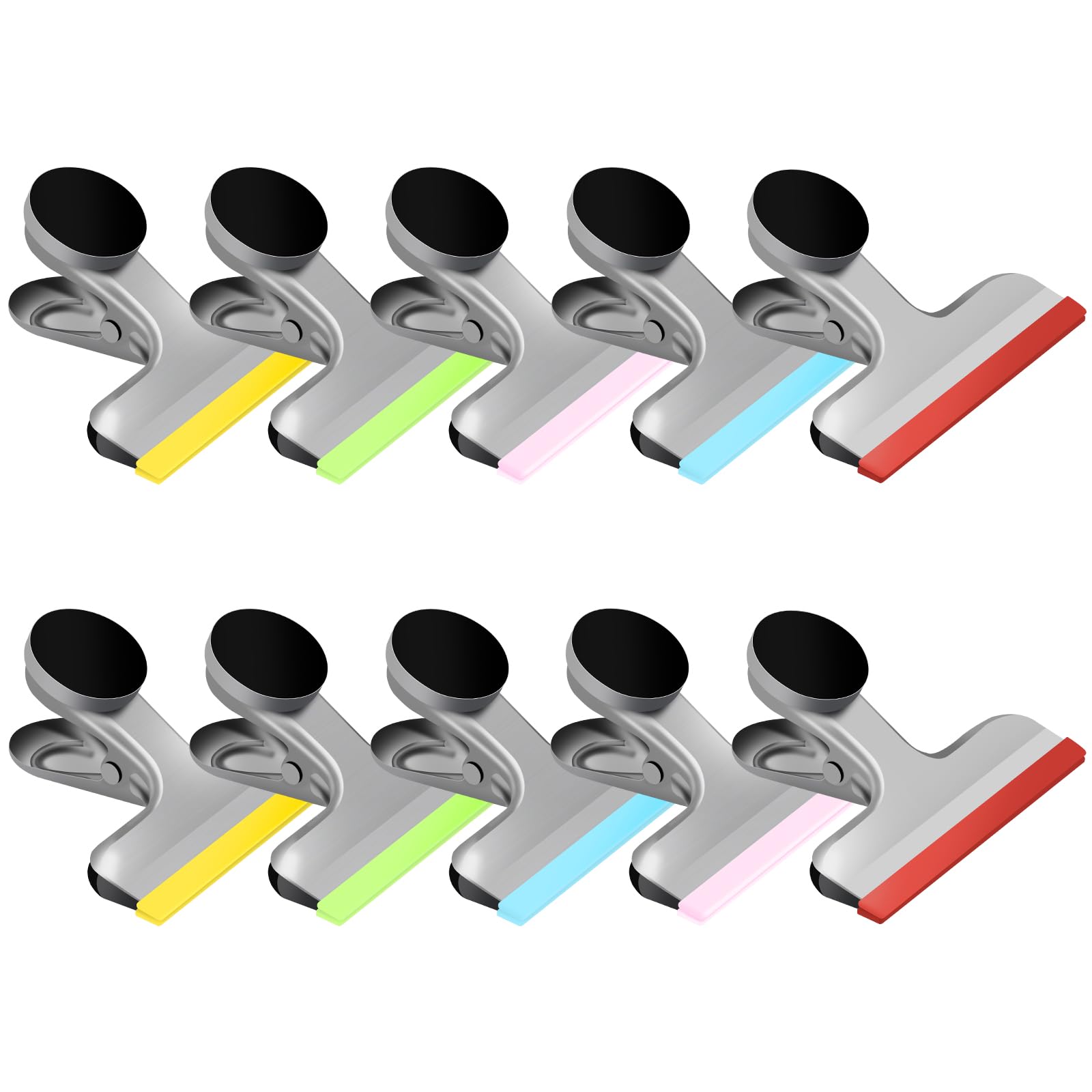 HOUSE AGAIN 10 Pack Chip Clips Bag Clips, Magnetic Bag Clip Covered with Silicone, Chip and Bag Clips for Food Storage Heavy Duty, Stainless Steel Food Clip for Snack, Kitchen, Refrigerator,Office