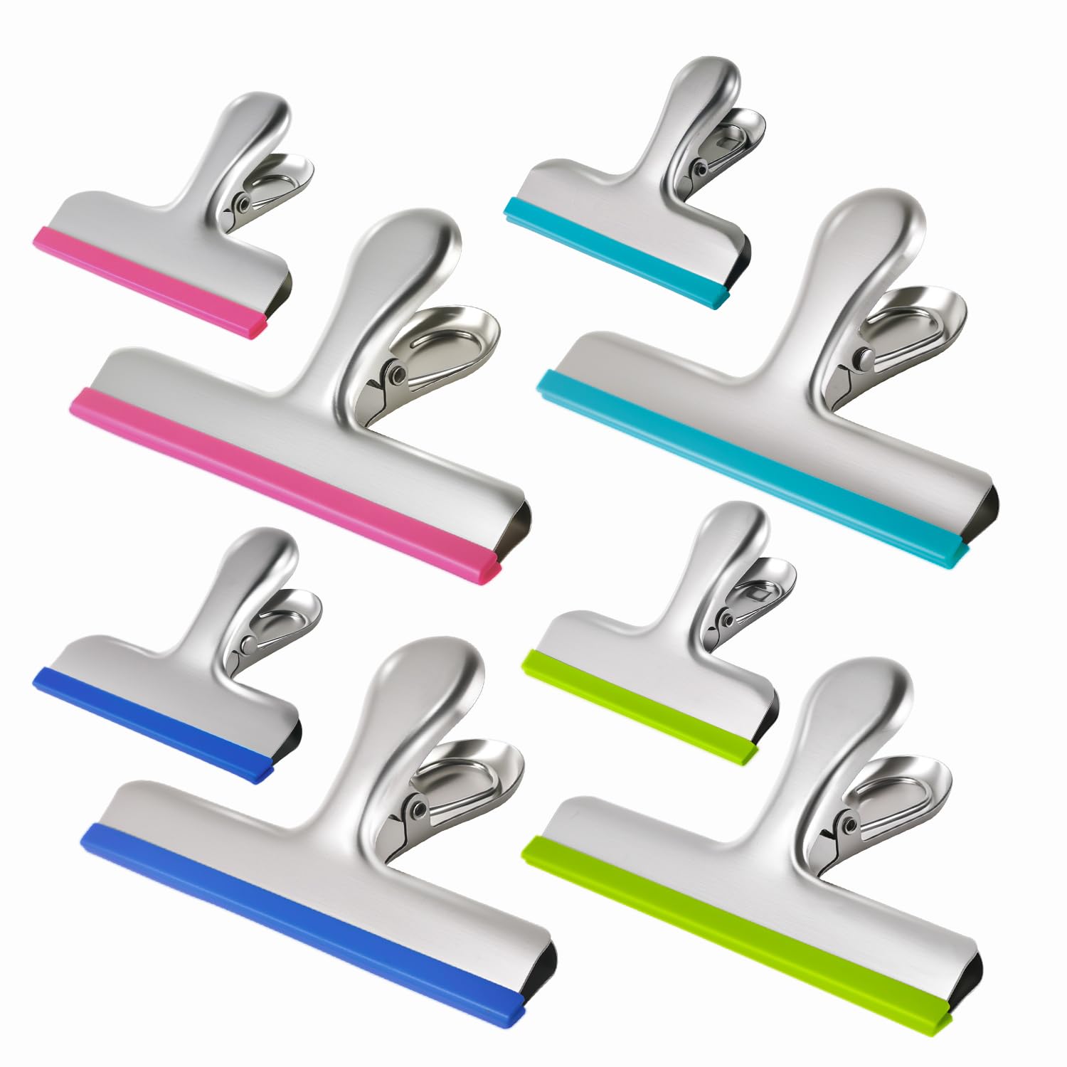 HOUSE AGAIN 8 Pack Stainless Steel Chip Bag Clips Covered with Silicone - NO More Sharp Edges - Color Coded for Upgrade Wide Open Food Bags, Heavy Duty for Kitchen and Office, (4 x L, 4 x S)