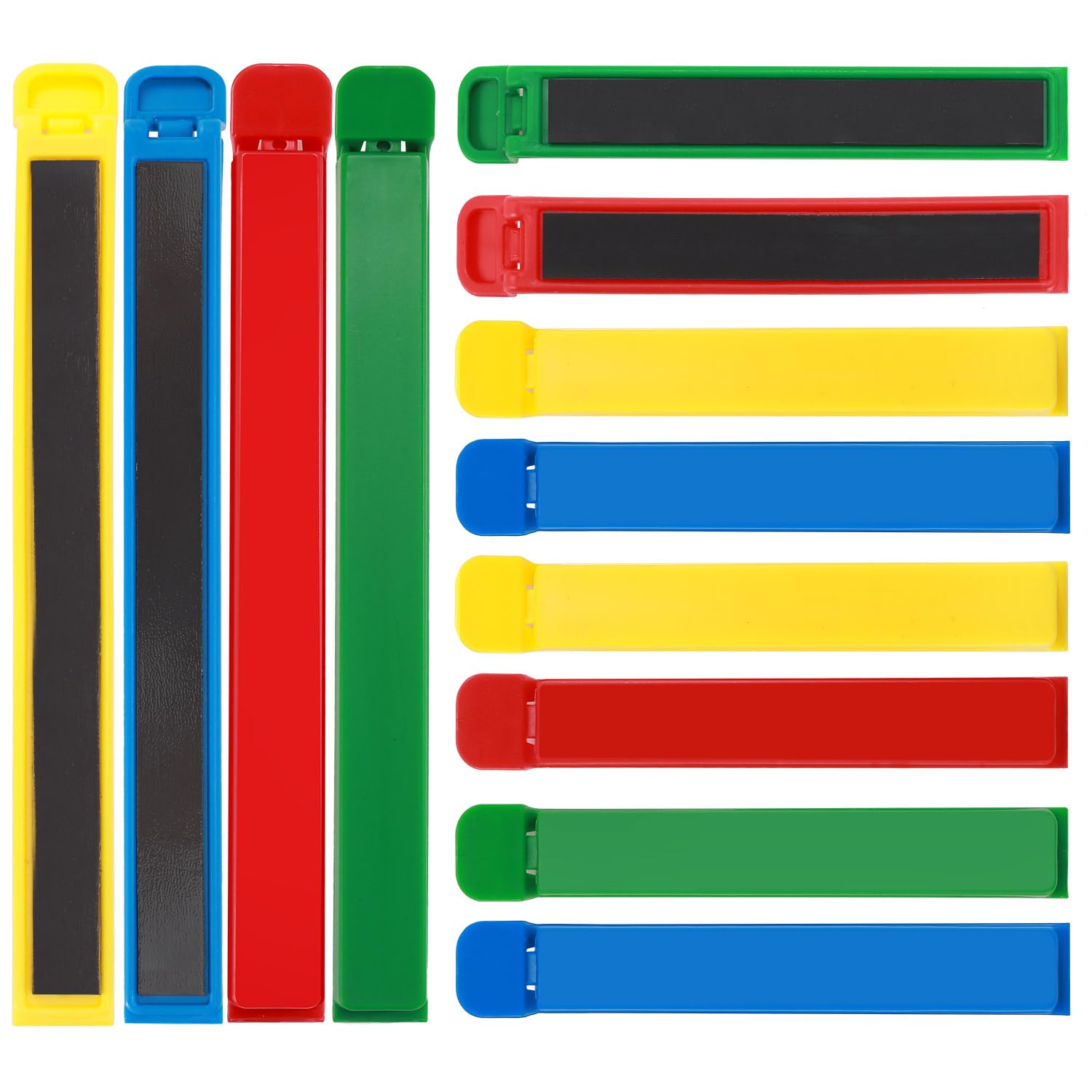 HOUSE AGAIN 12 PCS Plastic Chip Clips with Magnetic, Bag Clip for Food Storage, Food Bag Sealing Clip, Wide Open Food Clips for Bread, Snacks, Fridge Organizer Kitchen, Easy to Store (8 x S,4 x L)