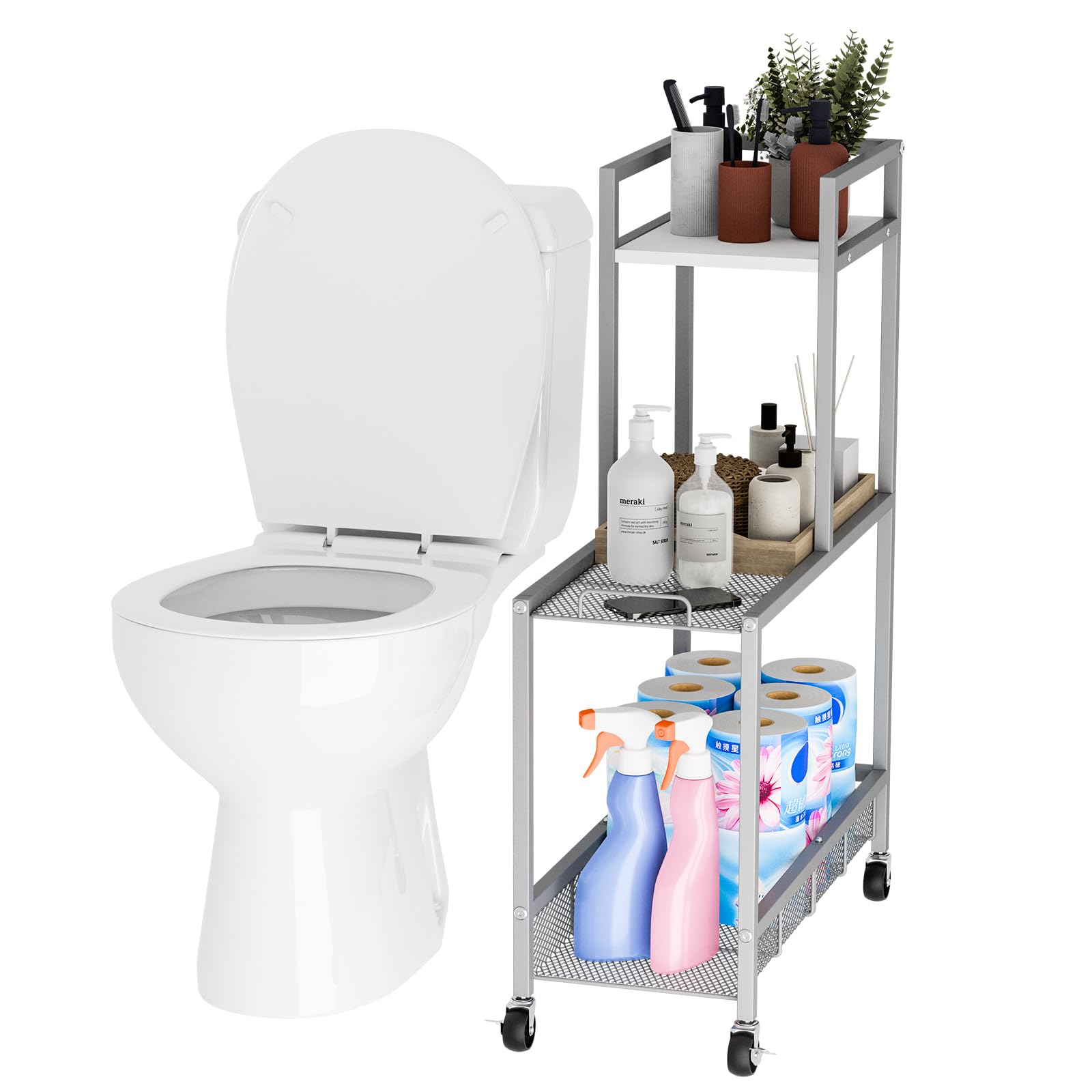 HOUSE AGAIN 3 Tier Movable Bathroom Shelves, Toilet Storage Rack Rack for Skinny Corner Floor, Sturdy Toilet Cabinet Bathroom Organizers and Storage Towel, Wash Supplies, Toilet Paper - Grey
