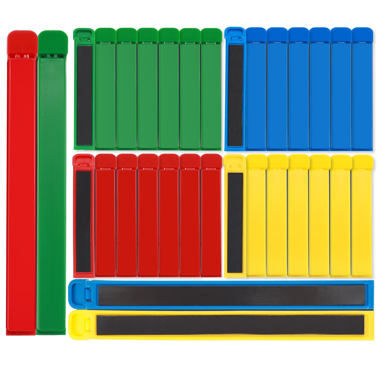 HOUSE AGAIN 32 PCS Plastic Bag Clip with Magnetic, Chip Clips for Food Storage, Upgrade Wide Open Colorful Large Food Clips for Bread, Snacks, Fridge Organizer Kitchen, Easy to Store (28 x S,4 x L)