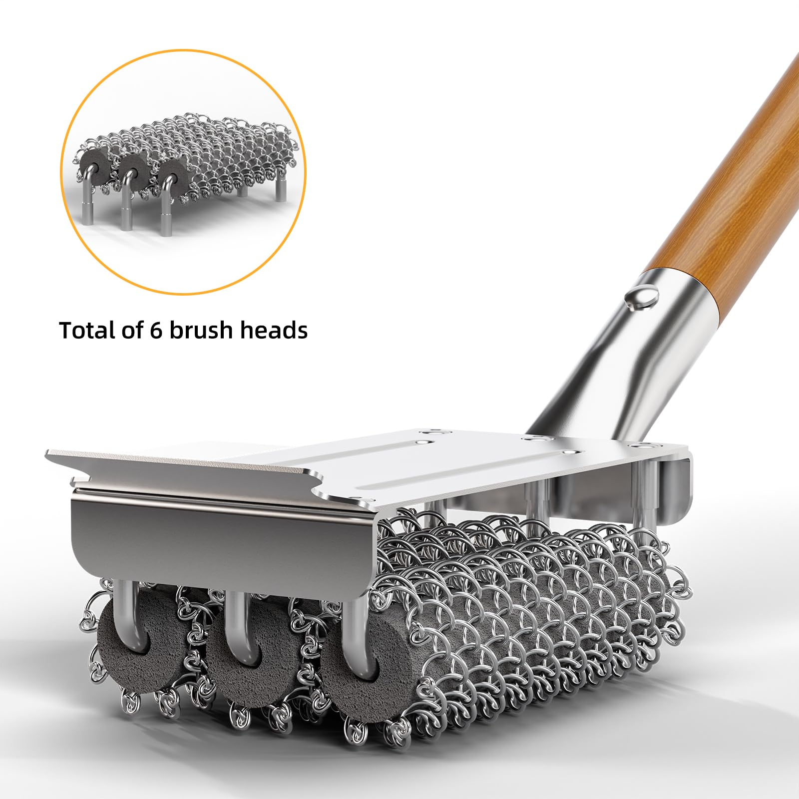 HOUSE AGAIN Grill Brush and Scraper Bristle Free, 304 Stainless Steel Food-Grade Brush Head, Safe BBQ Grill Grate Cleaner Brush No Wire, Outdoor Grill Accessories Cleaning Brush/Total of 6 brush heads
