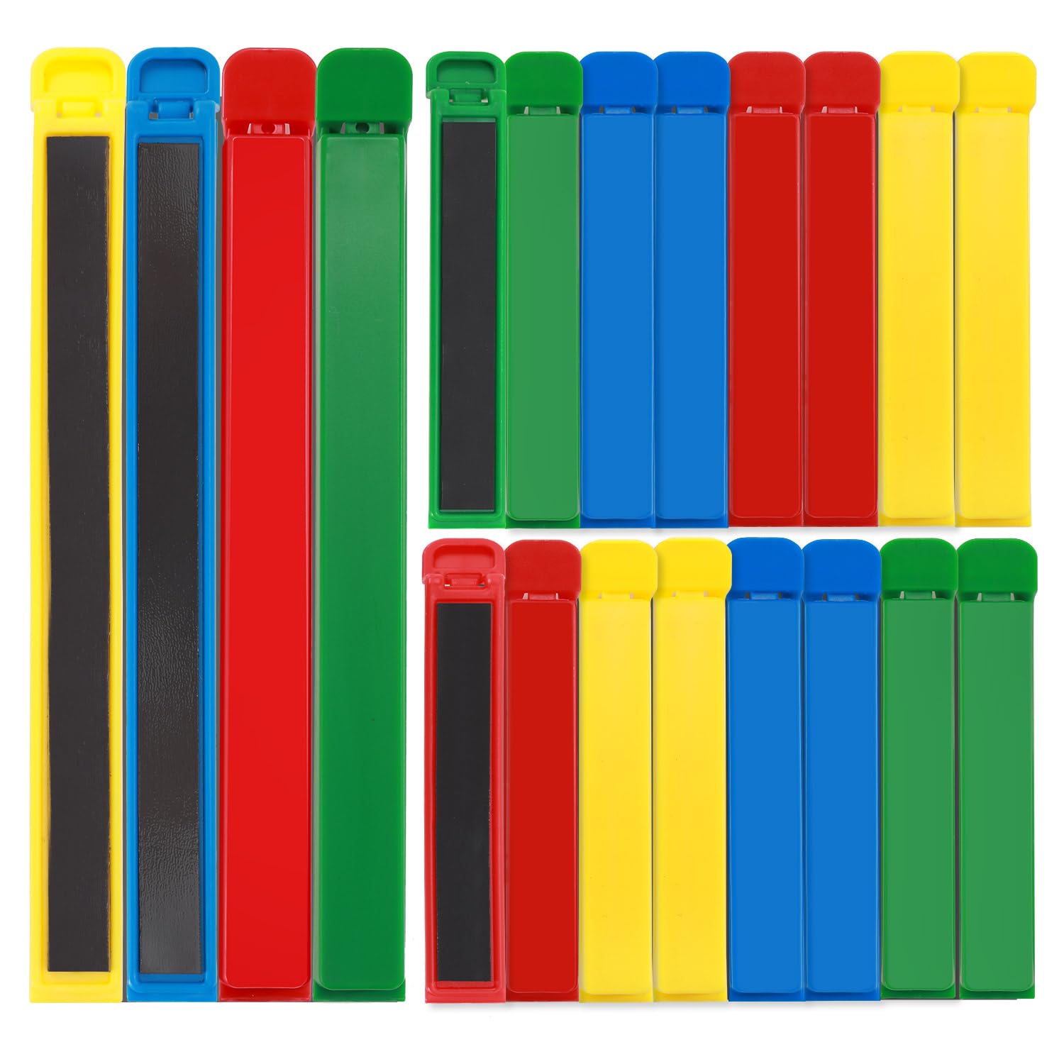 HOUSE AGAIN 20 PCS Bag Clip with Magnetic, Plastic Chip Clips for Food Storage, Upgrade Wide Open Colorful Food Clips for Bread, Snacks, Fridge Organizer Kitchen and Home, Easy to Store (16 x S,4 x L)