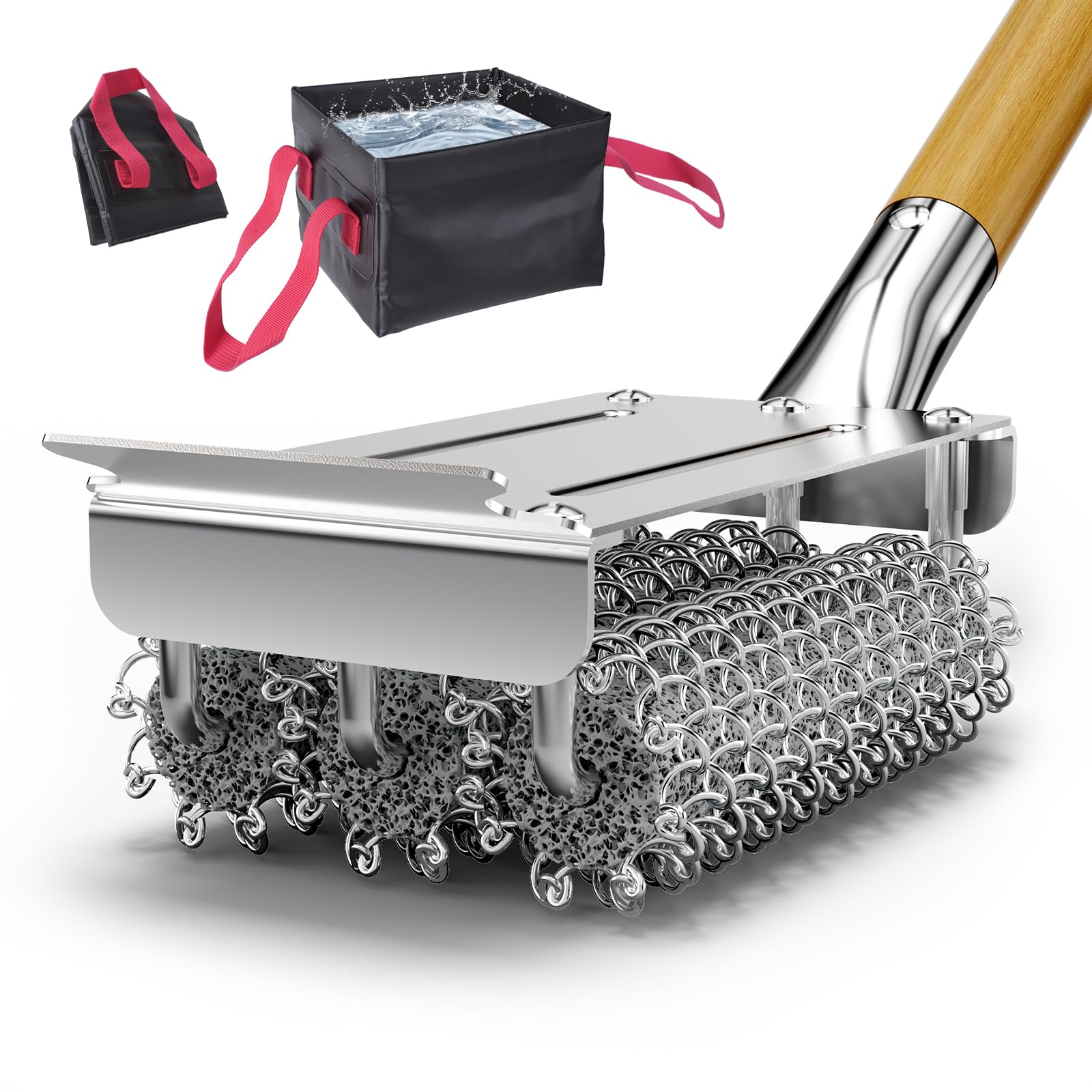 HOUSE AGAIN Grill Brush Bristle Free + Collapsible Water Bucket, Safe BBQ Outdoor Grill Accessories Cleaning Brush Scraper with Durable Dunk Tank for Great Value Bundle/Ideal for Dad