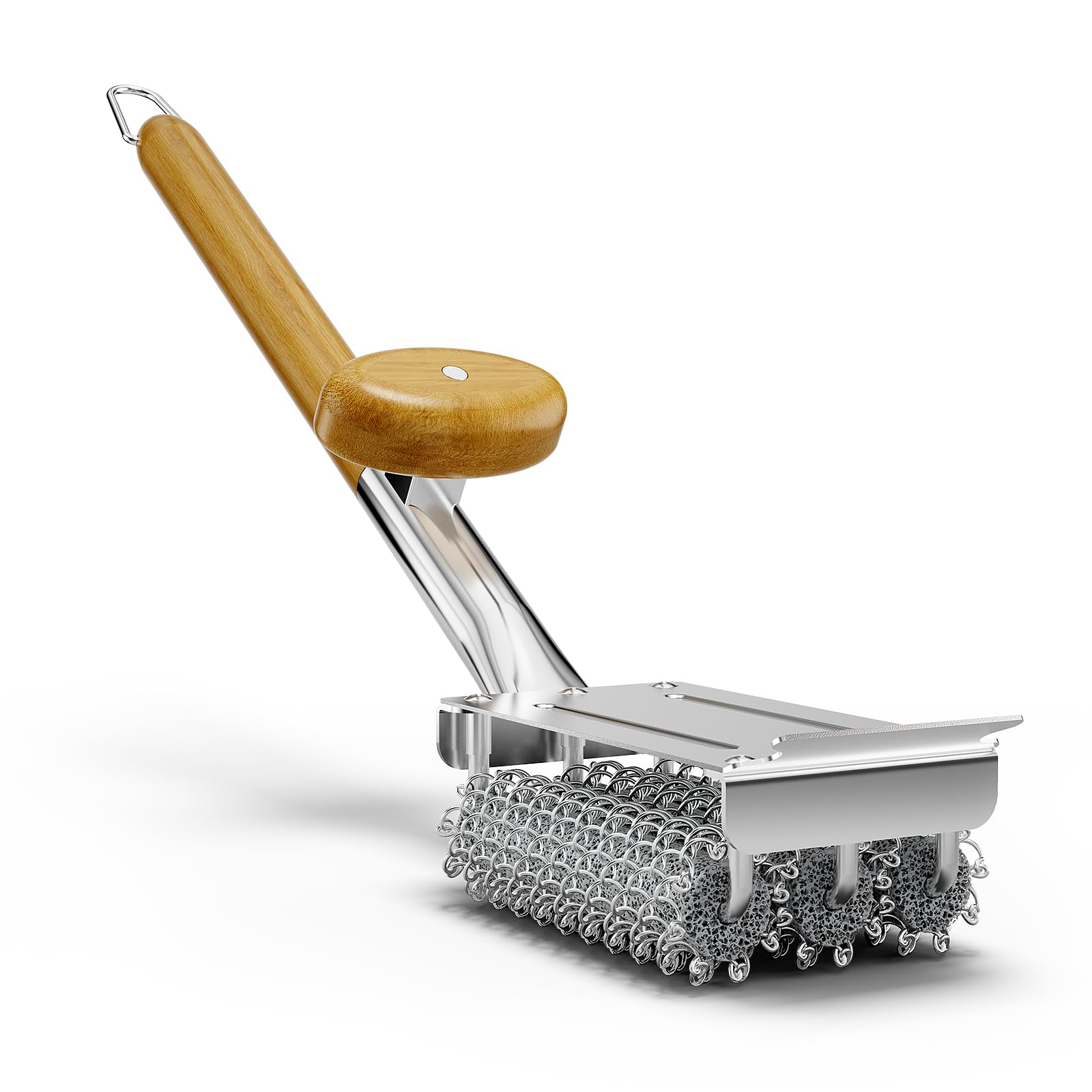 HOUSE AGAIN Grill Brush Bristle Free, 304 Stainless Steel Food-Grade Brush Head with Scraper, Safe BBQ Outdoor Grill Cleaning Brush Strong Barbecue Brush Cleaner Non Wire for Grill Grate/Wooden Handle