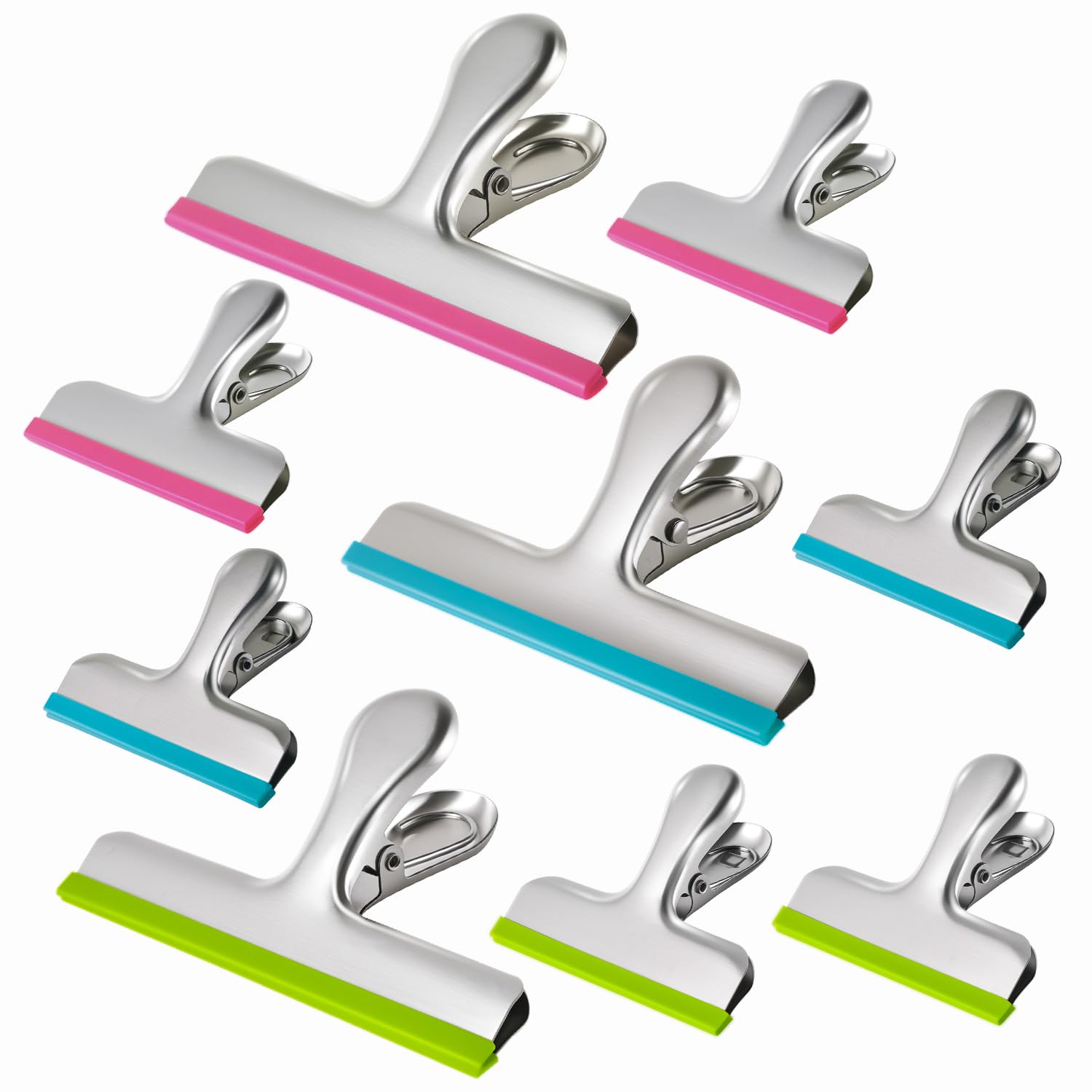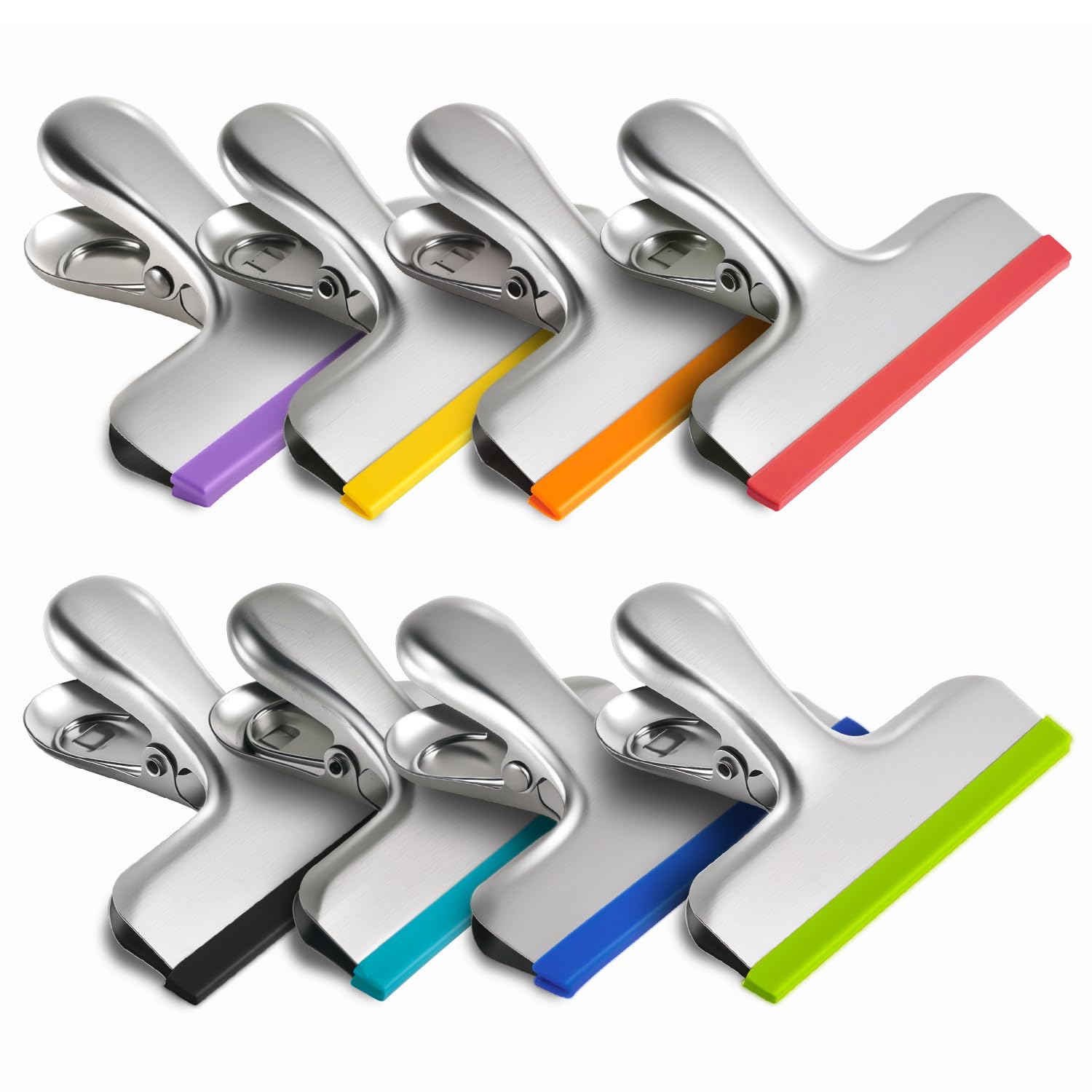 HOUSE AGAIN 8 Pack Stainless Steel Chip Bag Clips Covered with Silicone - NO More Sharp Edges - Color Coded for Food Bags - Air Tight Seal, Heavy Duty for Kitchen and Office, 3 Inches, Colorful